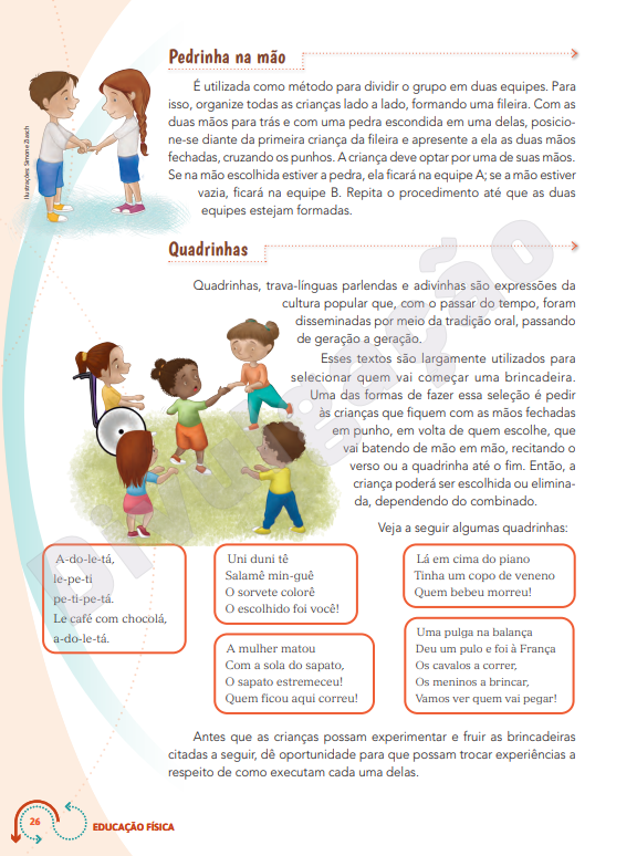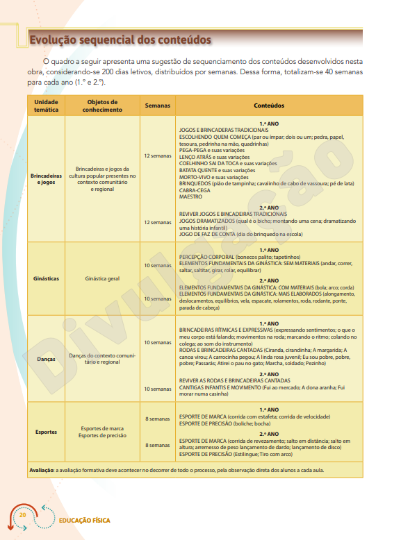 São contempladas as unidades temáticas de Brincadeiras e Jogos, Esportes, Ginástica e Danças.