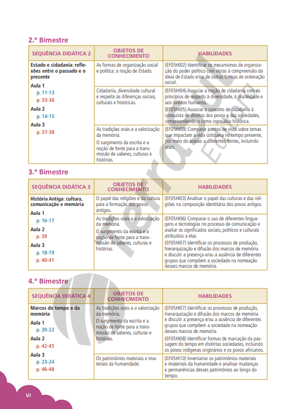 Este material poderá ser utilizado para efeitos de mapeamento e acompanhamento da progressão da aprendizagem dos alunos. Assim, apresentamos um plano de desenvolvimento dividido em bimestres para aplicação do conteúdo curricular proposto pela Base Nacional Comum Curricular (BNCC).